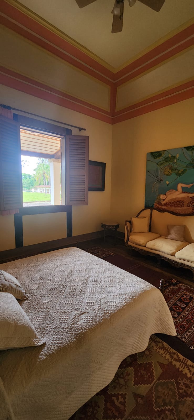 Logo na chegada, sentimos algo especial no ar. A fazenda combina, de forma encantadora, a rusticidade do campo com o conforto sofisticado, tudo preservado com muito cuidado e propósito. Cada canto parece contar uma história, e cada detalhe foi pensado para proporcionar uma sensação profunda de acolhimento.